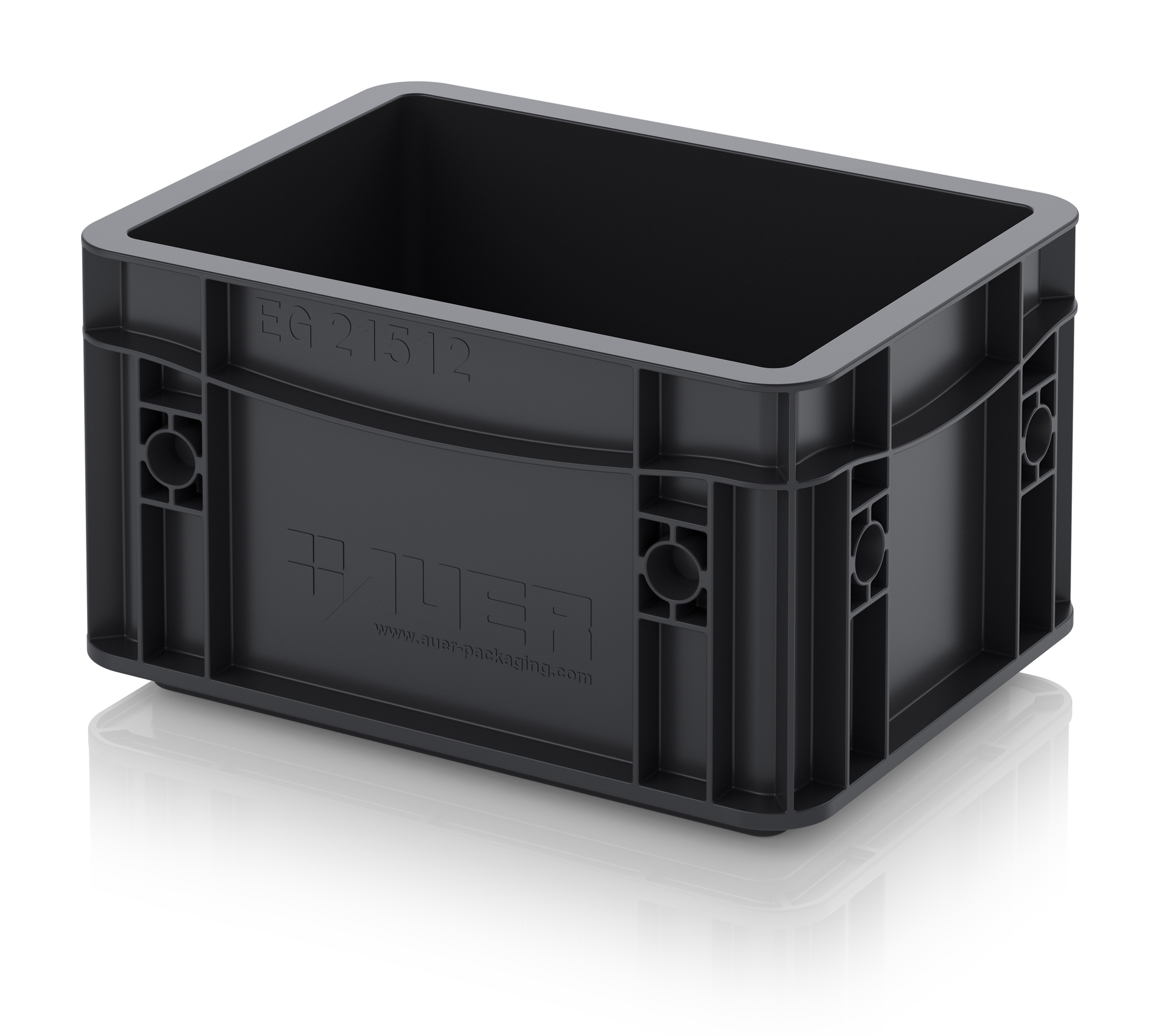 Евроконтейнер с ESD-защитой производства компании AUER Packaging изготавливается из антистатической пластмассы, что делает его пригодным, в частности, для надежного хранения и транспортировки электронной продукции.