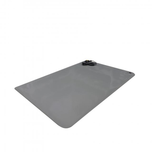Антистатический коврик изготовлен из 2-х слойного износостойкого высококачественного каучука класса B. Данный каучук отличается отсутствием едкого запаха. Верхний слой токорассеивающий — серого цвета, нижний слой токопроводящий — черного цвета. Настольный антистатический коврик устойчив к кратковременным химическим и температурным нагрузкам и не содержит галогенов. Коврики ESD изготавливаются как стандартных типоразмеров (600х400, 900х600, 1200х600 мм), так и иного размера по согласованию с Заказчиком.