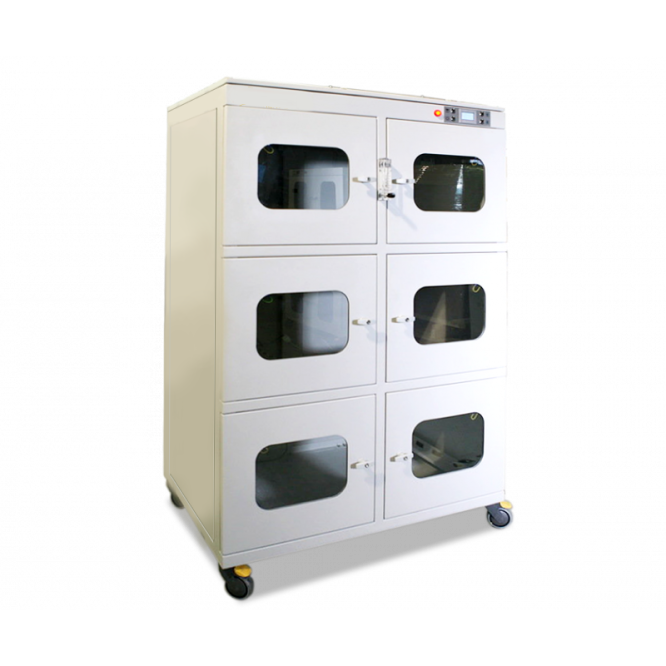 Шкаф сухого хранения,  предназначен для хранения печатных плат, SMD-компонентов, чувствительных к влаге, и других объектов. Он позволяет постоянно поддерживать заданный уровень влажности для качественного просушивания содержимого в течение 24 часов. Просушка осуществляется системой автоматического контроля.