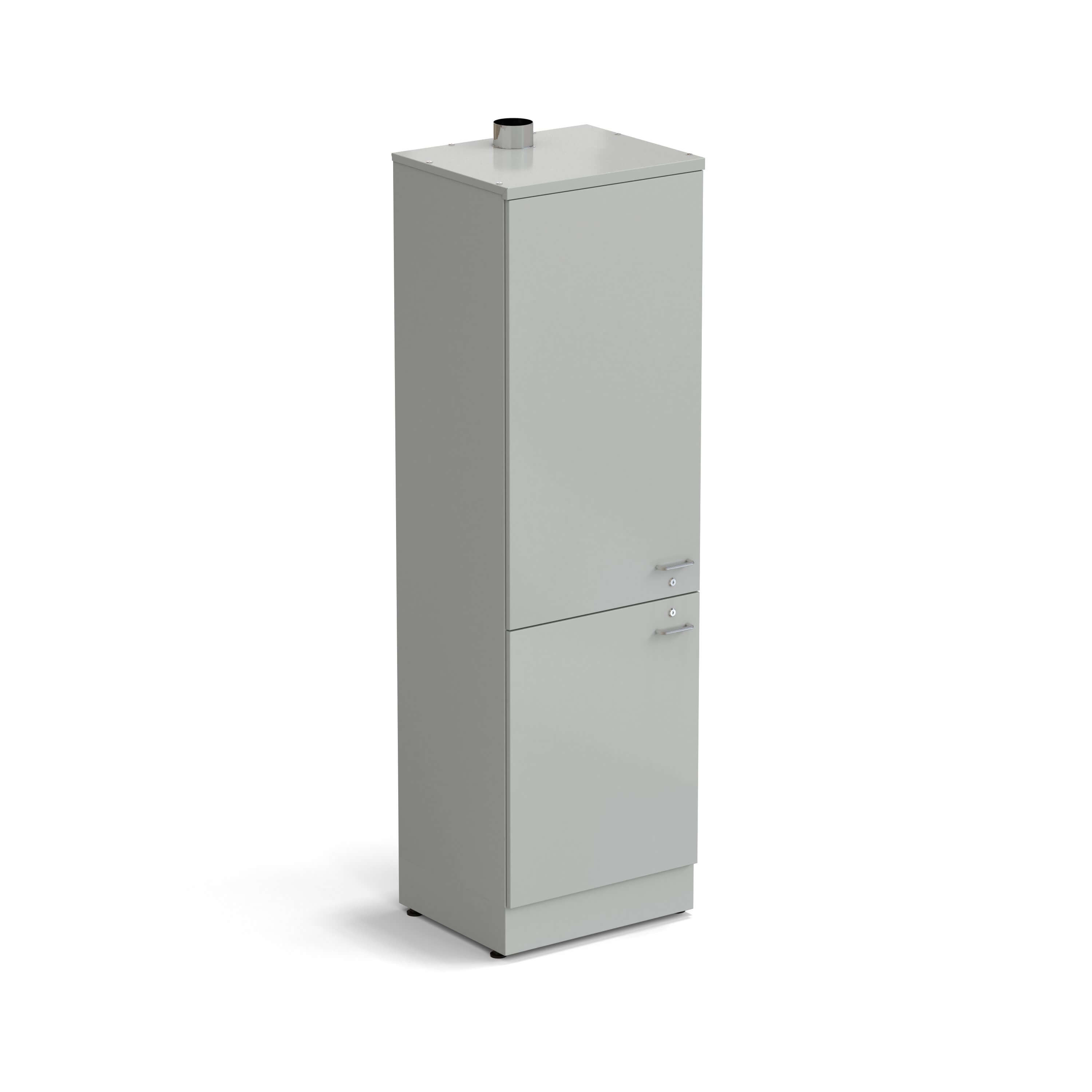 • Шкаф оборудован фланцем диаметром 100 мм для подключения к системе вытяжной вентиляции и имеет металлические дверцы, каждая из которых запирается на ключ;