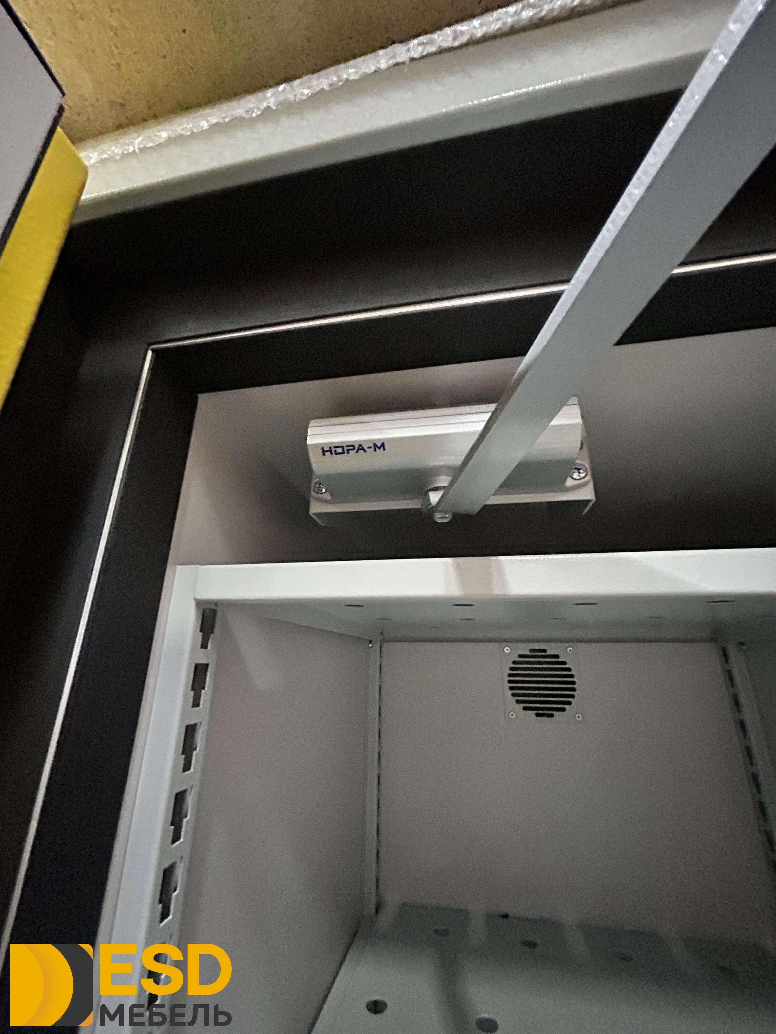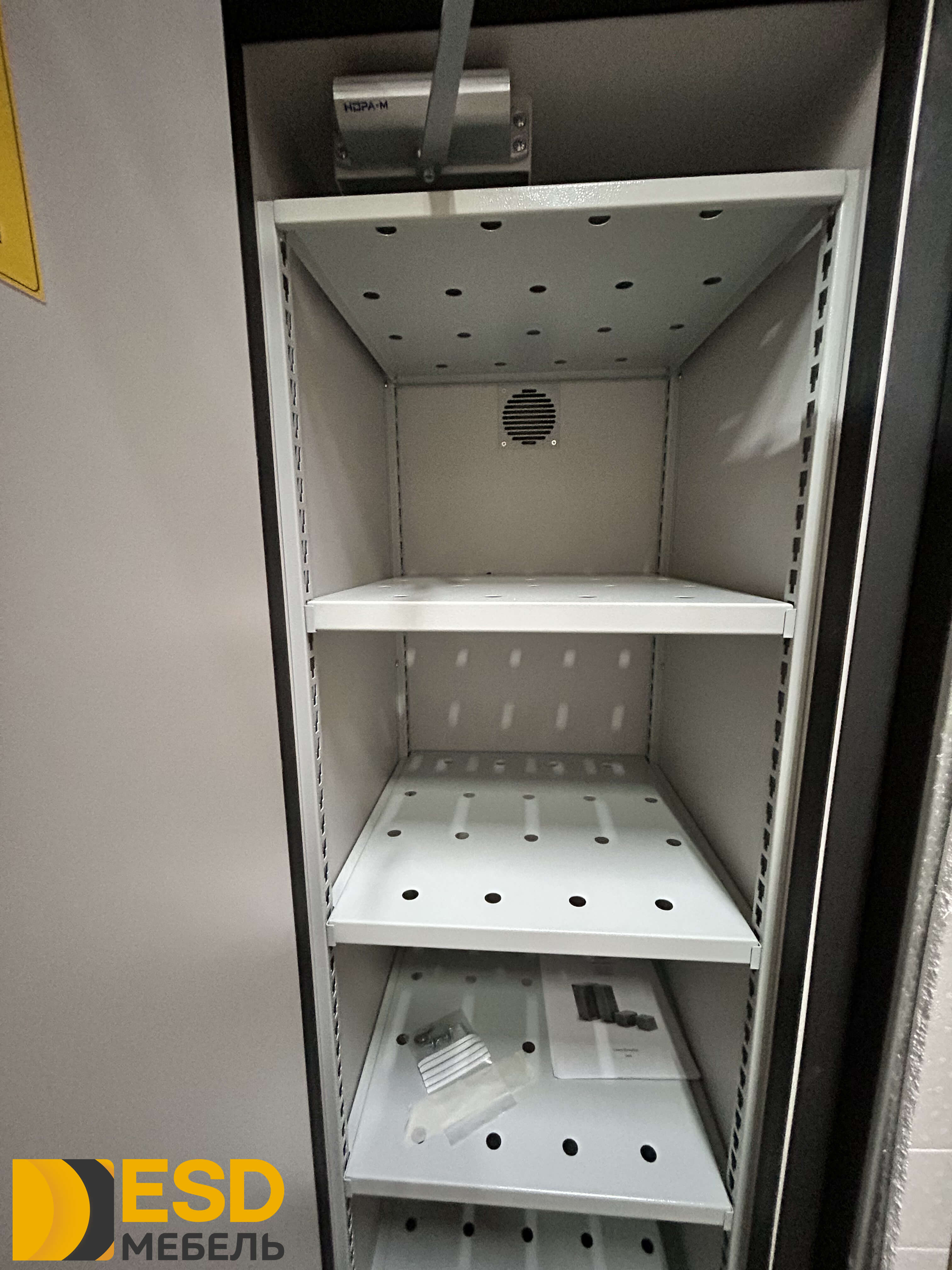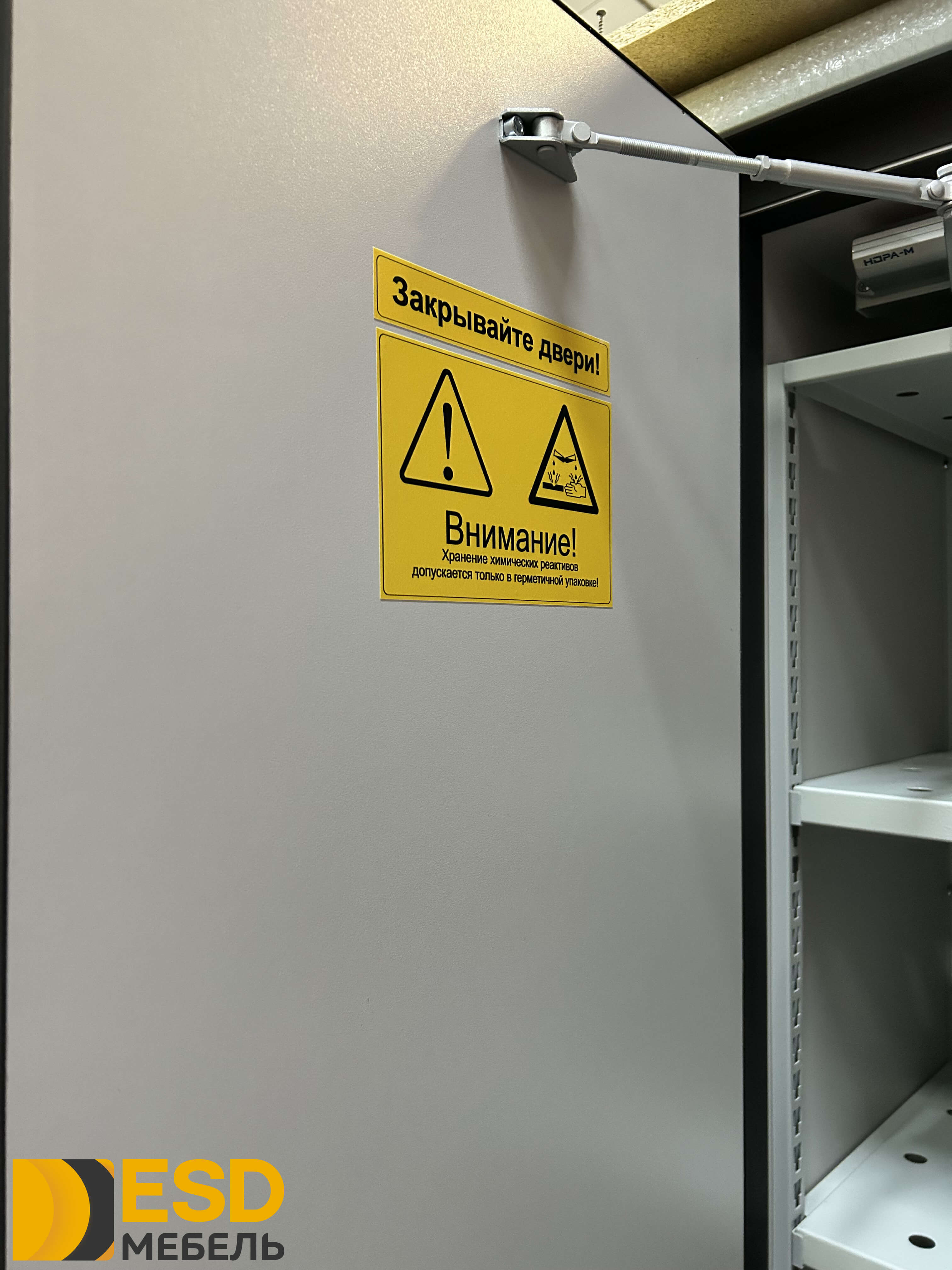 Шкаф ЛВЖ имеет огнестойкий наполненитель и внутренний антистатический корпус и терморасширяющую ленту.