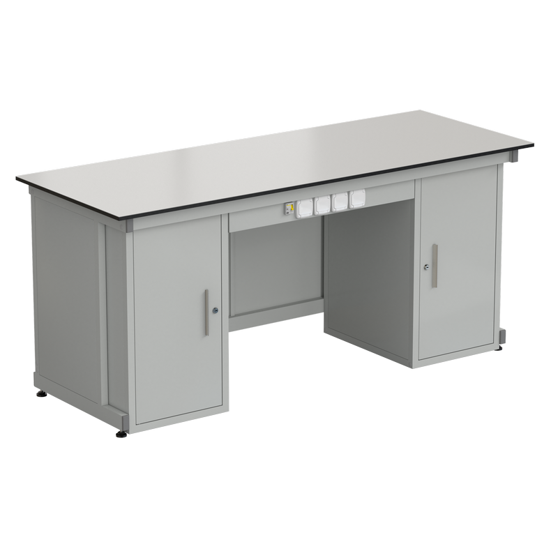 Предназначен для проведения демонстрационных опытов преподавателем, в кабинетах химии и физики. В комплекте имеет 2 напольные тумбы, сервисная панель с розетками 220В и УЗО, в правой тумбе расположена электрика для подачи напряжения к столам учащихся.