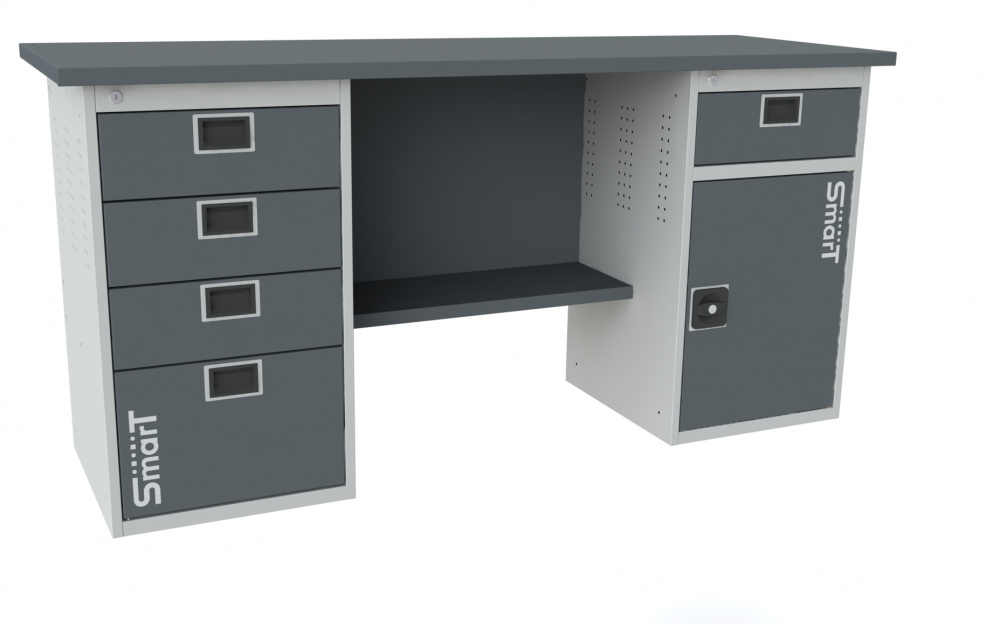 Универсальный металлический верстак серии Smart предназначен для обустройства легких производств, мастерских и гаражей. Все элементы изготовлены из высококачественной листовой стали, а покрытие устойчиво к механическим воздействиям и агрессивным жидкостям.