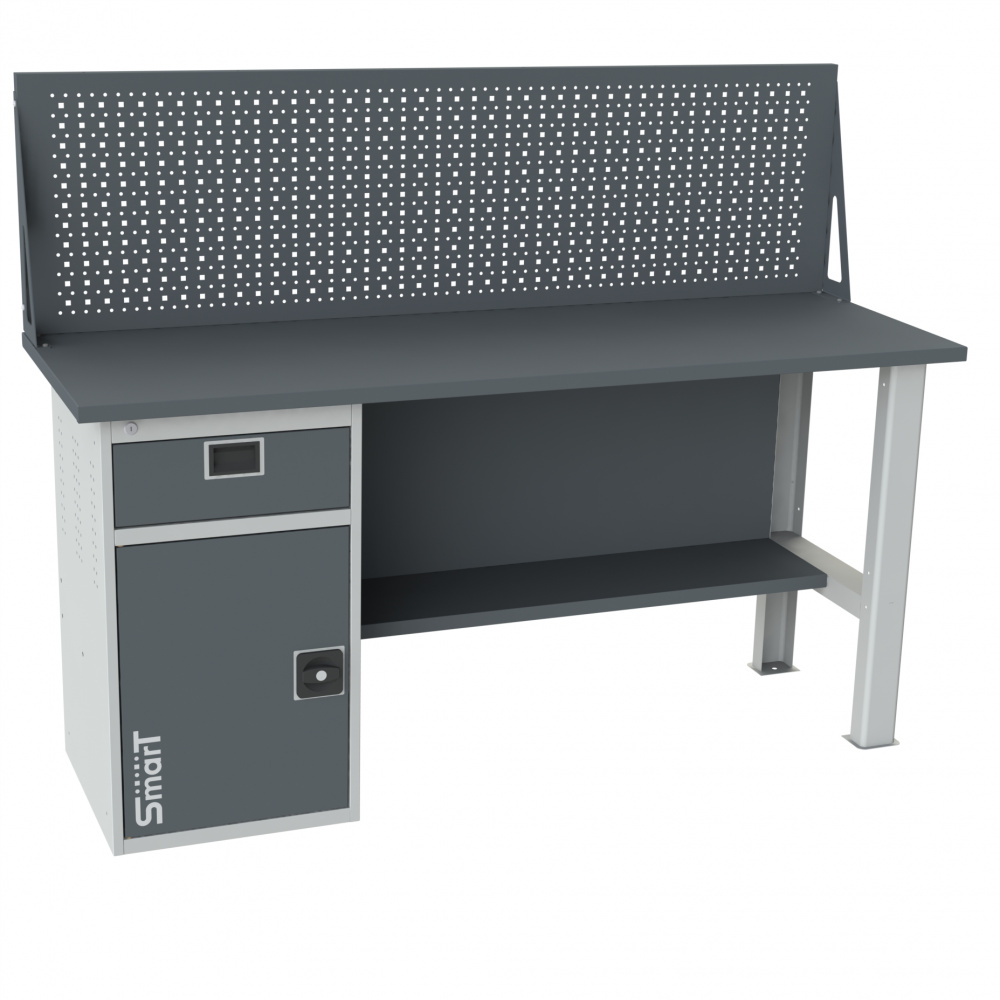 Универсальный металлический верстак серии Smart предназначен для обустройства легких производств, мастерских и гаражей. Все элементы изготовлены из высококачественной листовой стали, а покрытие устойчиво к механическим воздействиям и агрессивным жидкостям.