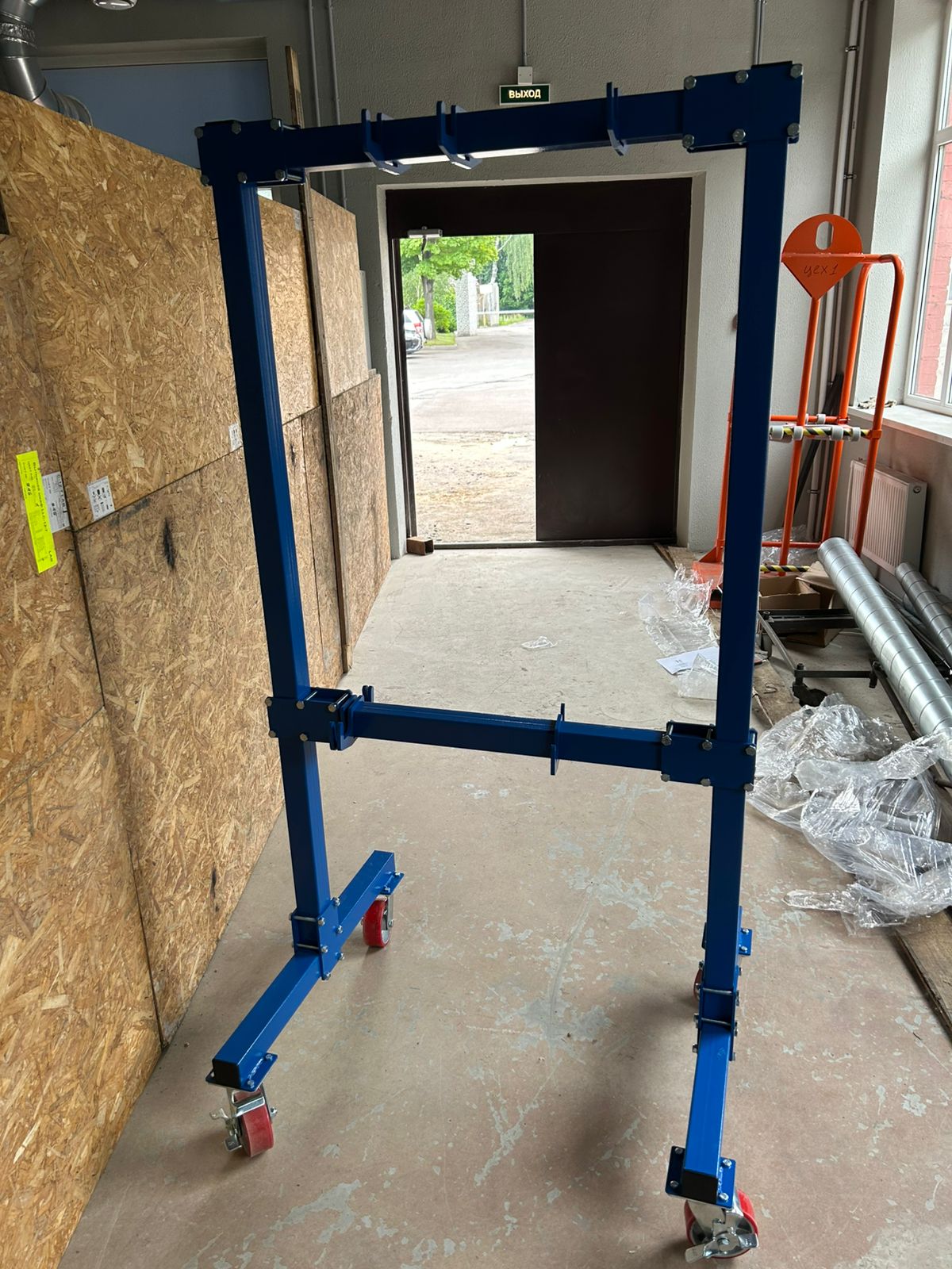 - Стеллаж для хранения строп на колесах может перемещаться из одного производственного помещения в другое.