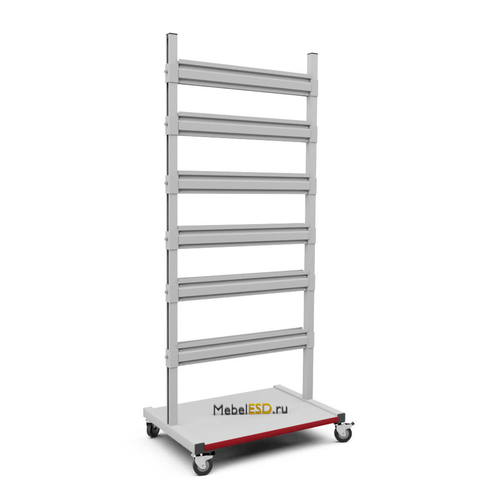 Стойка мобильная имеет металлический каркас окрашенный краской светло серого цвета RAL-7035 и изготавливается в промышленном и антистатическом исполнении.