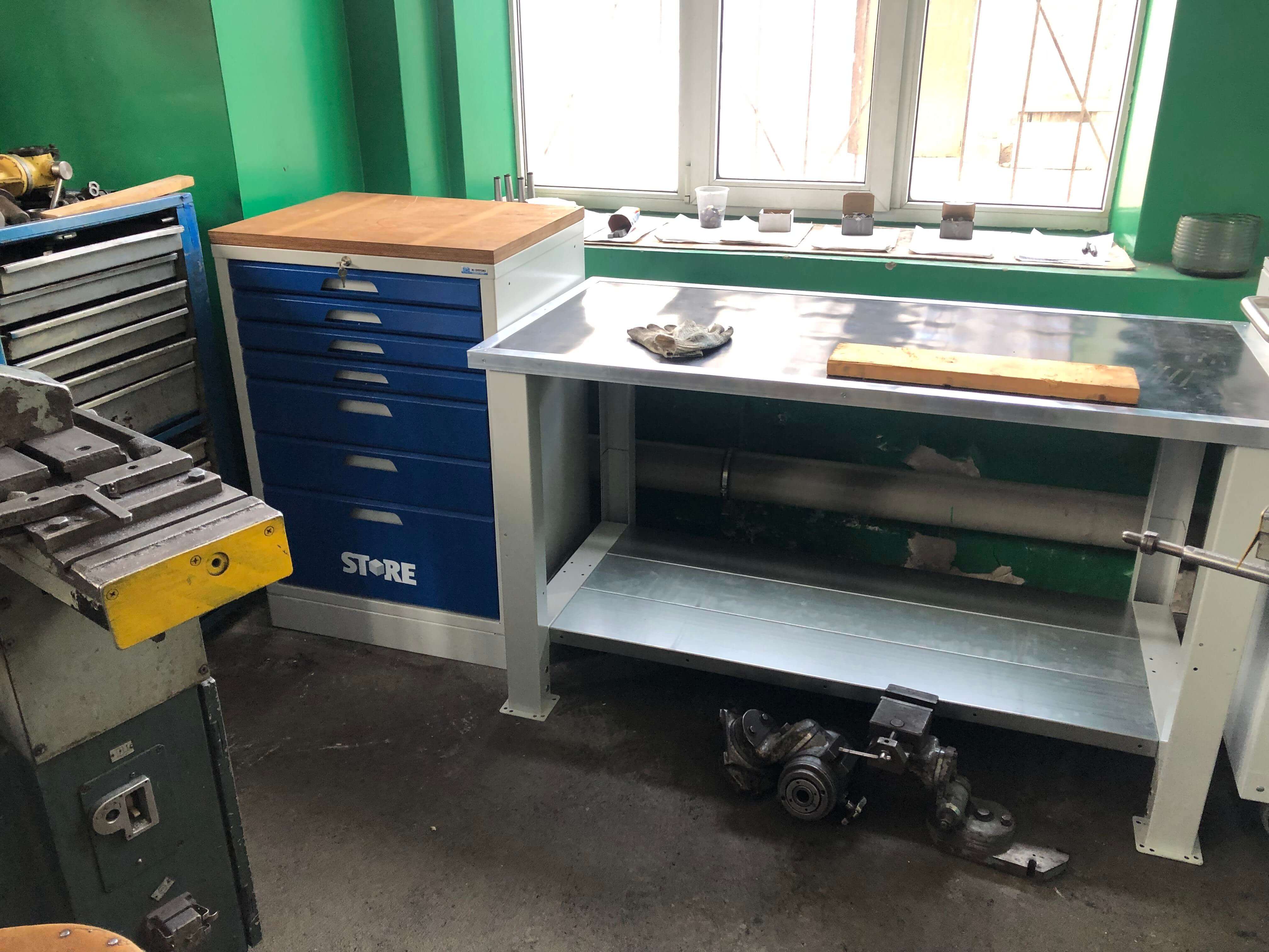 - Дополнительно на тумбы можно установить: столешницу из фанеры толщиной 30 мм, лоток с МБС резиной, экран перфорированный для наглядного размещения инструмента, а также два вида цоколей для транспортировки тумб и компенсации неровносттей пола