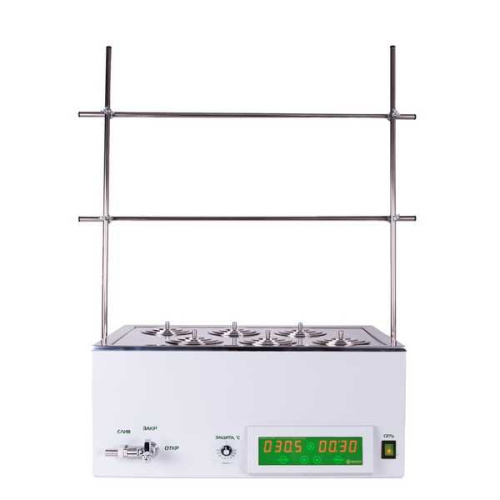 Баня лабораторная шестиместная ЭКРОС-4300 (ПЭ-4300) предназначена для проведения химических, биологических, фармацевтических процессов, требующих нагрева при постоянной температуре в диапазоне от температуры окружающей среды +5°С до 100°С в лабораторных условиях.